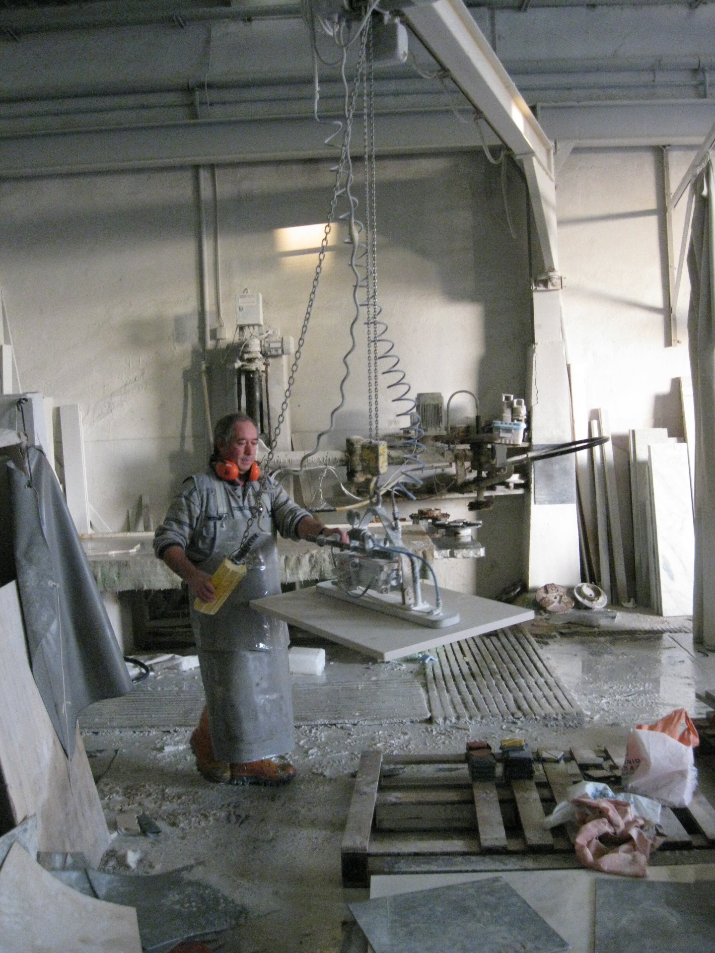 São somente 7 as empresas de Lisboa e arredores que ainda cortam, pulem as pedras que guarnecem as nossas casas e espaços de vida. Nelas trabalham uma dúzia e meia de operários, incluídos os donos e sócios num trabalho duro, discreto, sujo e desconhecido do grande publico, mas tão meritório e essencial ao nosso bem-estar. Trabalho hercúleo graças às poderosas máquinas que amplificam a mão humana, dando-lhe o macio e o belo da pedra, que a Natureza criou, mas que só o trabalho destes profissionais traz à nossa vista e para nosso regalo.
